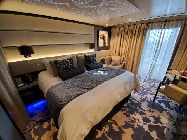 Actual cabin decor details and layout may vary by stateroom category and type.